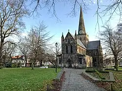 Darlington has a historic market area in the town centre. St Cuthbert's Church, built in 1183, is one of the most important early English churches in the north of England and is Grade I listed.[4] The oldest church in Darlington is St Andrew's Church, built around 1100 in Haughton-le-Skerne.