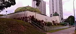 At first, the Darussalam Mosque was an unofficial establishment on 15 July 1979, being established by a committee of Muslim clerics and former government officials in the Clementi and Commonwealth neighbourhoods.[1] When the government had officially accepted the proposal for the construction of a mosque, groundbreaking began in 1984–1985.[1][2] Construction was planned to be officially completed in November 1988.[3] At the time, the main source of funding for the mosque was through the sales of food like Biryani and Nasi Lemak.[2] Ultimately, the Darussalam Mosque was completed in 1988 and officially opened on 27 December of that year.[1][4]
