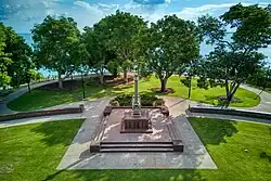 The park is home to monuments dedicated to those who died during the Bombing of Darwin, including: the Darwin Cenotaph War Memorial (erected 1921, moved to present location in 1992),[1] the Civilian Memorial and the USS Peary Memorial.[2]