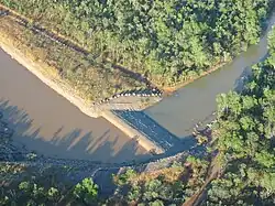 The Darwin River Dam is an embankment-type dam. The dam relies on the annual wet season to be replenished. It is ungated with no spillway regulation possible, and toward the end of the wet season, the dam can overflow. Most years spilling occurs, and is considered normal. Depending on rainfall amounts, this overflow can last from days to weeks.[3]