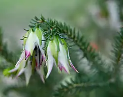 Darwinia meeboldii, commonly known as Cranbrook bell,[2] is a species of flowering plant in the family Myrtaceae and is endemic to the south-west of Western Australia.[3] It is an erect, spindly shrub with crowded leaves and clusters of pendent flowers surrounded by large bracts.
