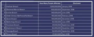 Data breach incidences in India were the second highest globally in 2018, according to a report by digital security firm Gemalto.[1][2] With over 690 million internet subscribers[3] and growing, India has increasingly seen a rise in data breaches both in the private and public sector.[4][5] This is a list of some of the biggest data breaches in the country.