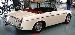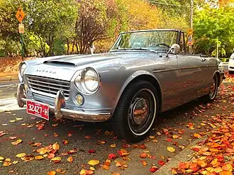 The first Datsun Sports model was the 1959 S211. It used a 988 cc C-series straight-4 producing 37 PS (27 kW; 36 hp). The S211 was based on the Datsun 211 sedan. Incorporated into the side trim were the side badges, which said "Datsun 1000". It was designed by Yuichi Ohta, who had previously designed the Datsun DC-3 and the prototype to the S211, the A80X.[1] Both the A80X and S211 featured fiberglass bodywork, influenced by the Chevrolet Corvette. Only 20 examples of the S211 were built, making the S211 the rarest of all Datsun Sports models.