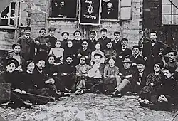 Immediately on landing in Jaffa, 7 September 1906, Ben-Gurion set off, on foot, in a group of 14, to Petah Tikva.[19][20] It was the largest of the 13 Jewish agricultural settlements and consisted of 80 households with a population of nearly 1,500; of these around 200 were Second Aliyah pioneers like Ben-Gurion. He found work as a day labourer, waiting each morning hoping to be chosen by an overseer. Jewish workers found it difficult competing with local villagers who were more skilled and prepared to work for less. Ben-Gurion was shocked at the number of Arabs employed. In November he caught malaria and the doctor advised he return to Europe. By the time he left Petah Tikva in summer of 1907 he had worked an average 10 days a month which frequently left him with no money for food.[21][22] He wrote long letters in Hebrew to his father and friends. They rarely revealed how difficult life was. Others who had come from Płońsk were writing about tuberculosis, cholera and people dying of hunger.[23]
