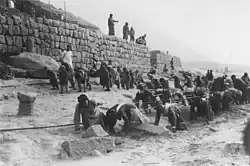 On his return to Sichuan in early 1933, Graham moved to Chengdu and began organizing and cataloging the stored holdings of the museum. His attention was drawn to a collection of Jade pieces contributed to the museum by a British missionary, V.H. Donnithorne, in 1931. These were from Guanghan county where a farmer, Yan Daocheng, had discovered them while digging an irrigation ditch in 1927.[36] Graham decided to investigate and headed up a team with the museum's assistant curator, Lin Min-Juin, to undertake an archaeological excavation. This was the first archaeological excavation of what is now known as Sanxingdui. Graham's preliminary report[37] has since been republished in China both in Chinese[38] and in English.[39] Graham dated the site to 1100 BC and earlier, believed there was a clear link to the cultures of central and northern China, and concluded that there was likely much more to be found in this area. All of this was confirmed by archaeological work decades later.[40] Unfortunately, Graham was unable to do any further excavation himself because of a national Administrative Yuan order in 1934 enforcing the Antiquities Preservation Law, restricting archaeological excavations in China and requiring collaboration with and financing of researchers from Academia Sinica.[41] After that, Graham had to rely more on purchasing artifacts for the museum from antiquarian dealers, without the benefits of proper excavation.