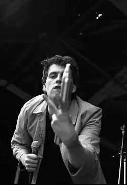David Rupert Edwards[1] (3 September 1964 – 20 June 2021) was a Welsh musician, singer and writer, best known as the lead singer of the Welsh language post-punk/experimental band Datblygu. NME said that "his contribution to the Welsh language can't be overestimated and his work with Datblygu serves as a focal point for its vibrant counter-culture".[2] Additionally, John Peel said that Edwards' lyrics made him want to learn Welsh.[3]