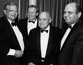 In 1980 Lange and a group consisting of Douglas, Bassett, Richard Prebble and Mike Moore tried to remove Rowling as leader of the Labour Party. Following the coup attempt Lange resigned as deputy leader in January 1981 to offer himself for re-election as a vote of confidence.[28] At Labour's first caucus meeting of the year he was re-elected as deputy leader.[29] After Labour lost the 1981 general election, the group, later known as the "Fish and Chip Brigade" (in reference to a picture published at the time showing the plotters eating fish and chips)[30] succeeded in their second attempt in 1983.[31]