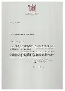 | Premiership of David Lange 26 July 1984 – 8 August 1989 | |