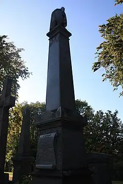 He is buried in Woodside Cemetery, Paisley, towards the west end of the main east-west path at the crest of the hill.