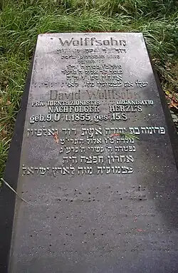 David Wolffsohn (Yiddish: דוד וואלפסאן; Hebrew: דוד וולפסון; 9 October 1855 in Darbėnai, Kovno Governorate – 15 September 1914) was a Lithuanian-Jewish businessman, prominent early Zionist and second president of the Zionist Organization (ZO).