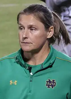 In 2003, began her career as an assistant soccer coach at the University of Notre Dame,[1] where she remained in 2023.[5] In that time, the team had participated in 16 championships, including National Collegiate Athletic Association (NCAA) titles in 2004 and 2010.[2]