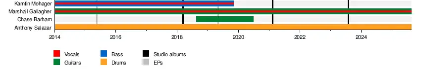 - Kamtin Mohager – bass guitar, vocals (2014–2019)