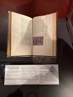 Daretis Phrygii Ilias De bello Troiano ("The Iliad of Dares the Phrygian: On the Trojan War") is an epic poem in Latin, written around 1183 by the English poet Joseph of Exeter.[1] It tells the story of the ten year Trojan War as it was known in medieval western Europe. The ancient Greek epic on the subject, the Iliad, was inaccessible; instead, the sources available included the fictional "diaries" of Dictys of Crete and Dares of Phrygia. When Joseph's text was printed for the first time in 1541, it was actually erroneously attributed to Dares of Phrygia, announced as the long-lost verse version of his story (quibus multis seculis caruimus – which we lacked for many centuries) supposedly put into Latin hexameters by Nepos.