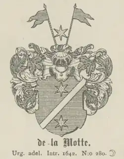 de la Motte refers to several noble families of French origin, some of which held high-ranking titles and offices in the French military, church, and royal court from the Middle Ages through the Ancien Régime.[1] The name is also associated with a Swedish noble family descended from a French officer who settled in Finland in the early 17th century.[2]