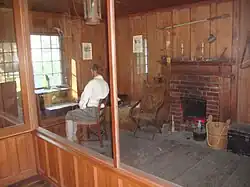 Deans Cottage was built from timber from the neighbouring bush. Kahikatea (white pine) was used for framing, weatherboards, and roof shingles. Trusses, floor boards and wall lining was made from mataī (black pine). The fireplace had a chimney made from cob. The cottage had two bedrooms, a sitting room (where the fireplace was) and a storage area in the loft. The kitchen was in the original building. Deans Cottage was lived in by the Deans brothers.[4]