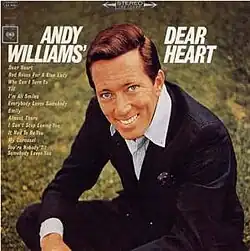 Andy Williams' Dear Heart is the sixteenth studio album by American pop singer Andy Williams and was released in the spring of 1965 by Columbia Records[3] and was the last of his Columbia releases that remained exclusively within the realm of traditional pop. After covering two Beatles hits on his next non-holiday studio album, The Shadow of Your Smile, he would try out samba music on In the Arms of Love, aim for a much younger crowd with "Music to Watch Girls By" on Born Free, and focus more on contemporary material on subsequent albums.
