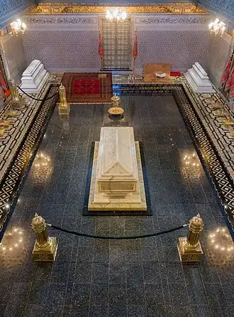 ![]() Interior of the Mausoleum of Mohammed V, the resting place of Hassan II | |