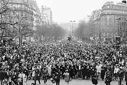 Oussekine's death sparked violent unrest in Paris. 30,000 protestors gathered outside of the hospital where he died, leading to a riot and clashes with police. A rally was also held outside of Paris' city hall and in the Latin Quarter, with both gatherings eventually leading to riots and skirmishing between police and demonstrators. 200,000 people took to the streets of Paris on 10 December, in a day of demonstrations in memory of Oussekine.[8]
