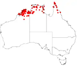 - ^ Bryan A Barlow (1993). "Conspectus of the genera Amylotheca, Cyne, Decaisnina, Lampas, Lepeostegeres, and Loxanthera (Loranthaceae)". Blumea. 38 (1): 77, fig. 3 (map). ISSN 0006-5196. Wikidata Q96032673.