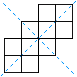 - 22 decominoes have an axis of reflection symmetry at 45° to the gridlines. Their symmetry group has two elements, the identity and a diagonal reflection.