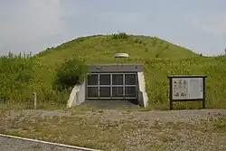 Decorated kofun (装飾古墳, sōshoku kofun) is the term used for kofun or ancient Japanese tombs ornamented with painted or carved decoration. The tombs take the form of tumuli or earthen mounds piled over stone chambers as well as caves excavated from the living rock. The decoration may be on the inner walls, on stone screens, on sarcophagi or, in the case of cave tombs, around the entrance on the exterior. Of the 161,560 ancient burials identified to date, around two hundred and fifty are so decorated.[1][2][3][4][note 1]