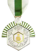 Order of Merit Given to government officials for long service and performance with honesty, devotion, and excellent character. These officials might be either Sudanese or foreigners.[13] Order have gold[14][15] silver[16] and bronze[17][18] classes. It had an associated medal.[19]