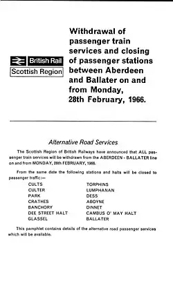 | Banchory Line and station closed | Scottish Region of British Railways Deeside Railway | Glassel Line and station closed | ||