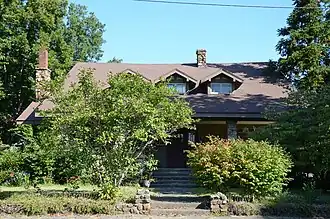 The Deener House is a historic house at 310 East Center Street in Searcy, Arkansas. It is a 1+1⁄2-story Bungalow/Craftsman style house that was designed by noted Arkansas architect Charles L. Thompson and built in 1912. It has the low-slung appearance typical of the Bungalow style, with a side gable roof that extends across its full-width front porch, where it is supported by fieldstone piers, and shows exposed rafters. Three small gable-roof dormers are closely spaced near the center of the otherwise expansive roof.[2]