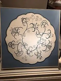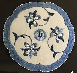 The Deerfield Society of Blue and White Needlework was founded in Deerfield, Massachusetts, in 1896 by Margaret C. Whiting and Ellen Miller. They formed the society in 1896 as a way to help residents boost the town's economy by reviving American needlework from the 1700s.[1] It was inspired by the crewel embroidery of 18th-century women who had lived in the Deerfield, Massachusetts, area. Members of the Blue and White Society initially used the patterns and stitches from these earlier works, but because these new embroideries were not meant to replicate the earlier works, the embroidery soon deviated from the original versions with new patterns and stitches, and even the use of linen, rather than wool, thread.[2]: 73  The society disbanded in 1926 for several reasons. Ellen Miller was in declining health; the trained stitchers were getting old and could not continue; Margaret C. Whiting's sight was fading; and, the design and quality of commercially produced items was increasing.[3]: 35