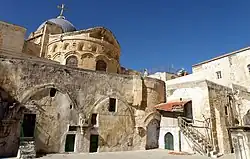 Deir es-Sultan, literally the Monastery of the Sultan (Arabic: دير السلطان, romanizedDeir al-Sultan), is an Oriental Orthodox monastery located on the roof of the Chapel of Saint Helena, which is part of the Church of the Holy Sepulchre in Jerusalem's Old City. The Status Quo, a 250-year old understanding between religious communities, applies to the site.[1][2] Ownership of the monastery is disputed between two churches of the Oriental Orthodox communion, the Coptic Orthodox Church and the Ethiopian Orthodox Tewahedo Church.