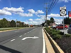 By 1968, DE 92 was designated onto its current alignment between DE 100 and US 13, with the easternmost portion replacing what had been designated a part of US 13 Bypass.[2] DE 92 was widened into a divided highway by 1997 between US 202 and DE 261 and between DE 3 and DE 491.[10] Two years later, the road was upgraded to a divided highway between DE 261 and DE 3.[11]