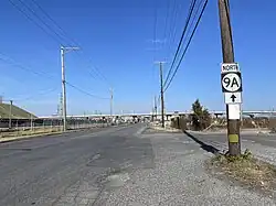 DE 9A proceeds north-northwest as a two-lane road, passing through more industrial areas and crossing under I-495 again, this time underneath the I-495 bridge over the Christina River. After this, the route has a grade crossing with a Norfolk Southern railroad spur before it crosses over Norfolk Southern's New Castle Secondary and Shellpot Secondary at grade crossings in marshland. The road continues between residential and commercial areas to the west and industrial areas to the east before terminating at both US 13 and DE 9 near the Christina River drawbridge leading into Wilmington's central business district.[2][4]