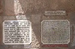 In 1831, the East India Company officer William Elliott made a facsimile of the inscription. Based on this facsimile, in 1834, James Prinsep published a lithograph in the Journal of the Royal Asiatic Society of Great Britain and Ireland. However, this lithograph did not represent every word of the inscription correctly.[13] Some years later, British engineer T. S. Burt made an ink impression of the inscription. Based on this, in 1838, Prinsep published an improved lithograph in the same journal, with his reading of the script and translation of the text.[13][14]