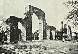 The pillar was installed as a trophy in building the Quwwat-ul-Islam mosque and the Qutb complex by Sultan Iltutmish in the 13th century.[29] Its original location, whether on the site itself or from elsewhere, is debated.[30][31]