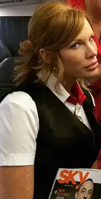 - In 2025, she made an appearance as a passenger in a safety video celebrating the airline's centennial. In this video, she taps a fellow passenger on the shoulder to remind him that smoking is not allowed.[14]