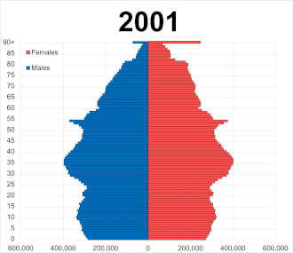 - ^ UK Statistics (27 March 2011). "2011 Census: Usual resident population by five-year age group and sex, United Kingdom and constituent countries". UK Statistics. Retrieved 19 December 2012.