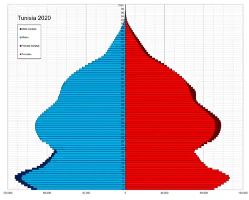 ![]() Population pyramid of Tunisia in 2020 | |