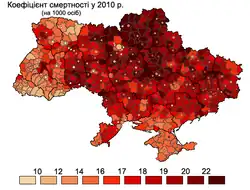 - ^ Общий коэффициент смертности (на 1000 населения): Украина: 1950–2013 [Crude death rate (per 1,000 people): Ukraine: 1950–2013]. Demoscope Weekly (in Russian). Archived from the original on 21 March 2016. Retrieved 22 April 2016.