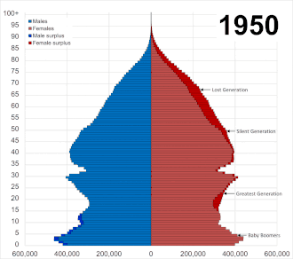 During the first half of the 20th century, the United Kingdom began to approach the fourth stage of the demographic transition.[10] The deaths of troops in the First World War, coupled with the 1918 influenza outbreak, are estimated to have totalled over 900,000 deaths in the United Kingdom.[10] This reduced the male population of the Lost Generation and altered the sex ratio, which slowed the growth rate of the population.[10] By the end of the Second World War, the fourth stage transition was completed. There was a low but fluctuating birth rate, a low death rate and a slower population growth rate.[10] The British Nationality Act 1948 allowed many people from the British Empire's colonies to migrate to the country, being classed in nationality as the same as a native of the United Kingdom. This law, while an unintentional side-effect, led to the start of modern immigration to the United Kingdom.