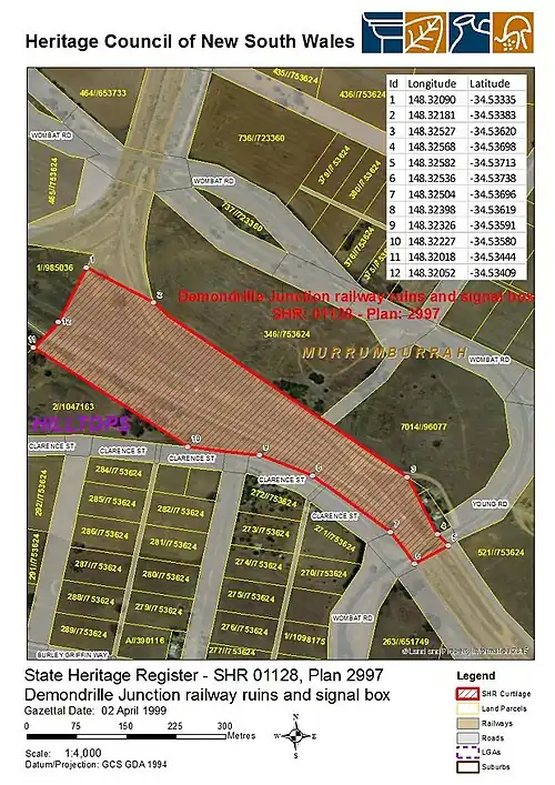 - ^ "Demondrille Junction railway ruins and signal box". New South Wales State Heritage Register. Department of Planning & Environment. H01128. Retrieved 2 June 2018.