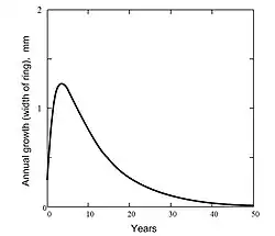 The dendrochronological equation defines the law of growth of tree rings. The equation was proposed by Russian biophysicist Alexandr N. Tetearing in his work "Theory of populations"[29] in the form: