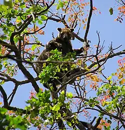 Although the IUCN still rates the status of Bennett's tree-kangaroo as "near threatened",[2] its numbers seem to be increasing and its range expanding. Sightings have become far more common in recent years. In 2006 a dead specimen was found along Amos Bay Road, just south of Cooktown. The increases in numbers and range are likely because most of its range is now protected under World Heritage legislation, and it is no longer hunted by Indigenous Australians. Both Roger Martin and Lewis Roberts, two of the world's top experts on this species, agree that it should now be classified as "secure".[4]