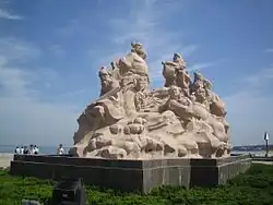 Penglai has been ranked by the Chinese government as a top domestic tourist destination.[8] Its Water Fortress (水城, Shuǐchéng), a fortified harbor, is one of China's oldest military ports. It was built under the Ming in 1376[9] and housed a fleet of warjunks.[5] It is now a protected historical monument being renovated at a cost of 500m RMB (more than $60m). There is a plank walk along the cliffs nearby.