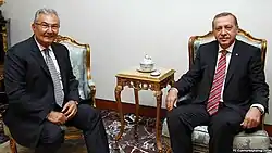 Baykal was one of the five CHP politicians who were offered ministerial positions by Justice and Development Party leader Ahmet Davutoğlu in August 2015. Davutoğlu had been tasked by President Recep Tayyip Erdoğan to form an interim election government after coalition negotiations proved unsuccessful and resulted in Erdoğan calling an early election. Since the CHP had 131 MPs during the formation of the interim government, the party was entitled to 5 ministries in the cabinet, though Kılıçdaroğlu announced that the CHP would not take part and give up their five ministries to independent politicians. Baykal subsequently declined Davutoğlu's offer, as did the four other CHP MPs that had been offered ministerial positions.[7] His letter of declination was three pages long and was described by himself as an 'equivalent of a historical document'.[8]
