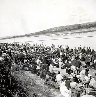 In Bessarabia, on 6 July, approximately 500 Jews were killed at Edineț, and almost 1,000 were killed at Novoselytsia around the same time. The killing spree expanded to Briceni, Lipcani, Fălești, Mărculești, and Gura Căinarului, where thousands were shot by 8 July. By 11 July, Einsatzgruppe D started operating in Bălți, one of the largest cities of Bessarabia. The peak of the slaughter was reached by 17 July when possibly as many as 10,000 Jews were killed in one day.[28] As the army moved further south, the Jews of Cetatea Albă, some 5,000 people in total, fled en masse. Those who stayed behind, approximately 500, were killed by the advancing army.[29]