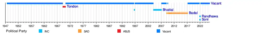 | 1 | Balram Das Tandon (Amritsar Central) (1927-2018) | | 17 February 1969 | 26 March 1970 | 1 year, 37 days | Bhartiya Jana Sangh | Gurnam Singh | D. C. Pavate | [2] | |