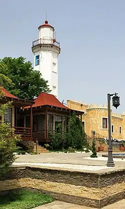 The Derbent Lighthouse is the southernmost lighthouse in Russia,[1] located in the city of Derbent, a city in the Russian Republic of Dagestan.[2] It is in the center of the city, on the fortress wall between the parks named after Sergei Kirov and Nizami Ganjavi and about half a kilometer from the coastline.[3] The lighthouse is included in the list of protected monuments of Russia and is included in the historical list of UNESCO.