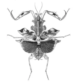 | Deroplatys sarawaca illustration from The Cambridge Natural History by David Sharp (1895) | |