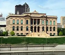 At the turn of the 20th century, encouraged by the Civic Committee of the Des Moines Women's Club, Des Moines undertook a "City Beautiful" project in which large Beaux Arts public buildings and fountains were constructed along the Des Moines River. The former Des Moines Public Library building (now the home of the World Food Prize); the United States central Post Office, built by the federal government (now the Polk County Administrative Building, with a newer addition); and the City Hall are surviving examples of the 1900–1910 buildings. They form the Civic Center Historic District.