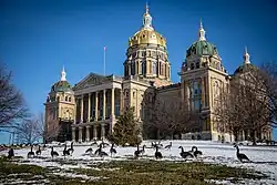 The Des Moines metropolitan area, officially known as the Des Moines–West Des Moines, IA Metropolitan Statistical Area (MSA) is located at the confluence of the Des Moines River and the Raccoon River. Des Moines serves as the capital and largest city of the U.S. state of Iowa. The metro area consists of six counties in central Iowa: Polk, Dallas, Warren, Madison, Guthrie, and Jasper.[3] The Des Moines–Ames–West Des Moines Combined Statistical Area (CSA) encompasses the separate metropolitan area of Ames (Story County), and the separate micropolitan area of Boone (Boone County). The Des Moines area is a fast-growing metro area.[4]